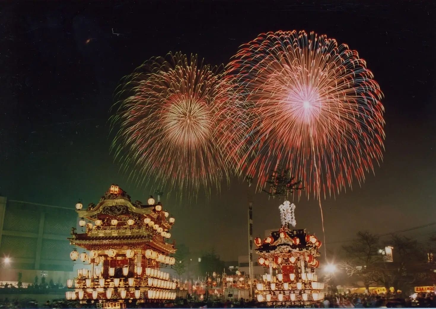 最大の見どころは、豪華絢爛な装飾が施された屋台と笠鉾(かさほこ)の曳き回しです。提灯の明かりが灯る夜、夜空を彩る大輪の花火とともに、街全体が幻想的な雰囲気に包まれます。