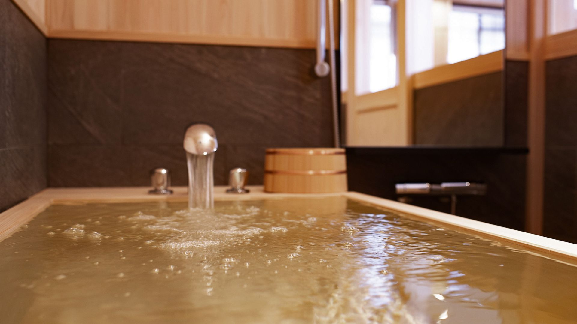 冷えた体をじんわりと温めるのは、客室に備え付けられた檜(ひのき)風呂。