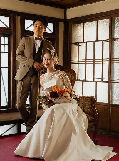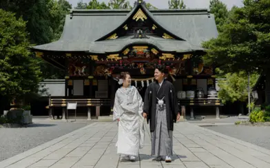 秩父銘仙を着用しての撮影もでき、地域の名所を巡りながら、思い出に残る写真を撮影します。シンプルな結婚式を希望される方や、文化体験を重視するカップルにおすすめです。
