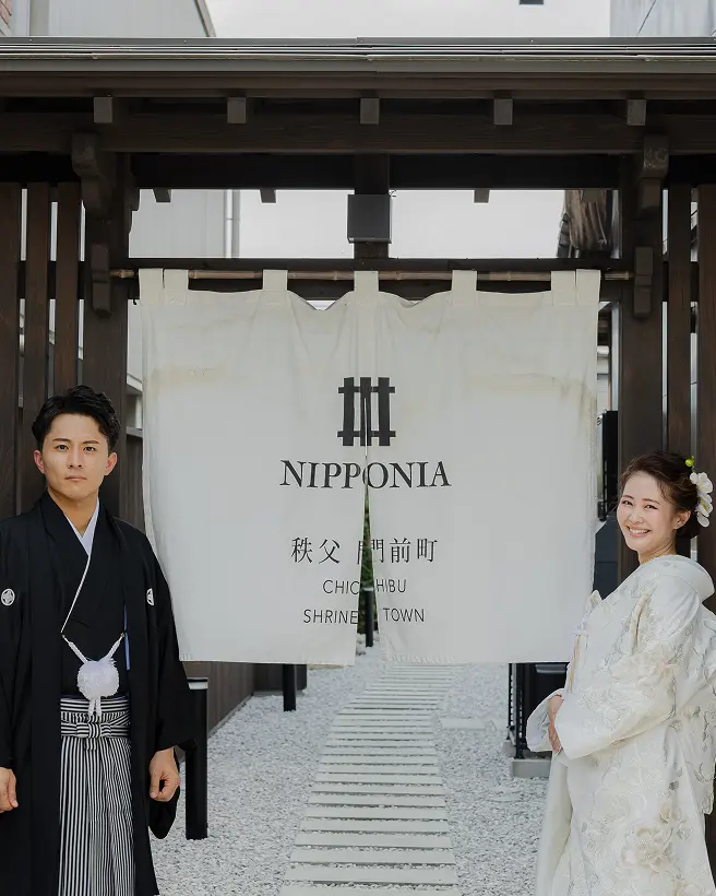 昭和初期の登録有形文化財「小池煙草店」や明治時代から続く「マル十薬局」など、歴史的価値の高い日本建築、歴史建築などをリノベーションした分散型ホテル「NIPPONIA 秩父 門前町」を舞台に、「まち全体をホテルにする」というコンセプトのウエディングを提供します。